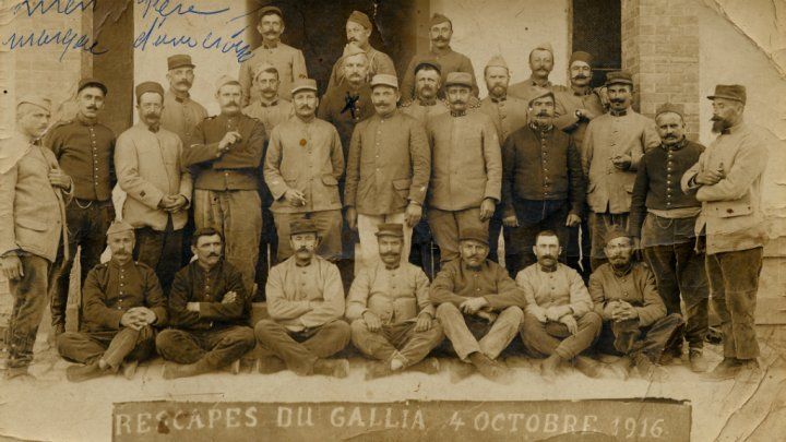 © Europeana1914-1918/ Collection de Claire de Bengy Puyvallée | Des rescapés du torpillage du Gallia prennent la pause. (source : France 24, article du 10 octobre 2016)